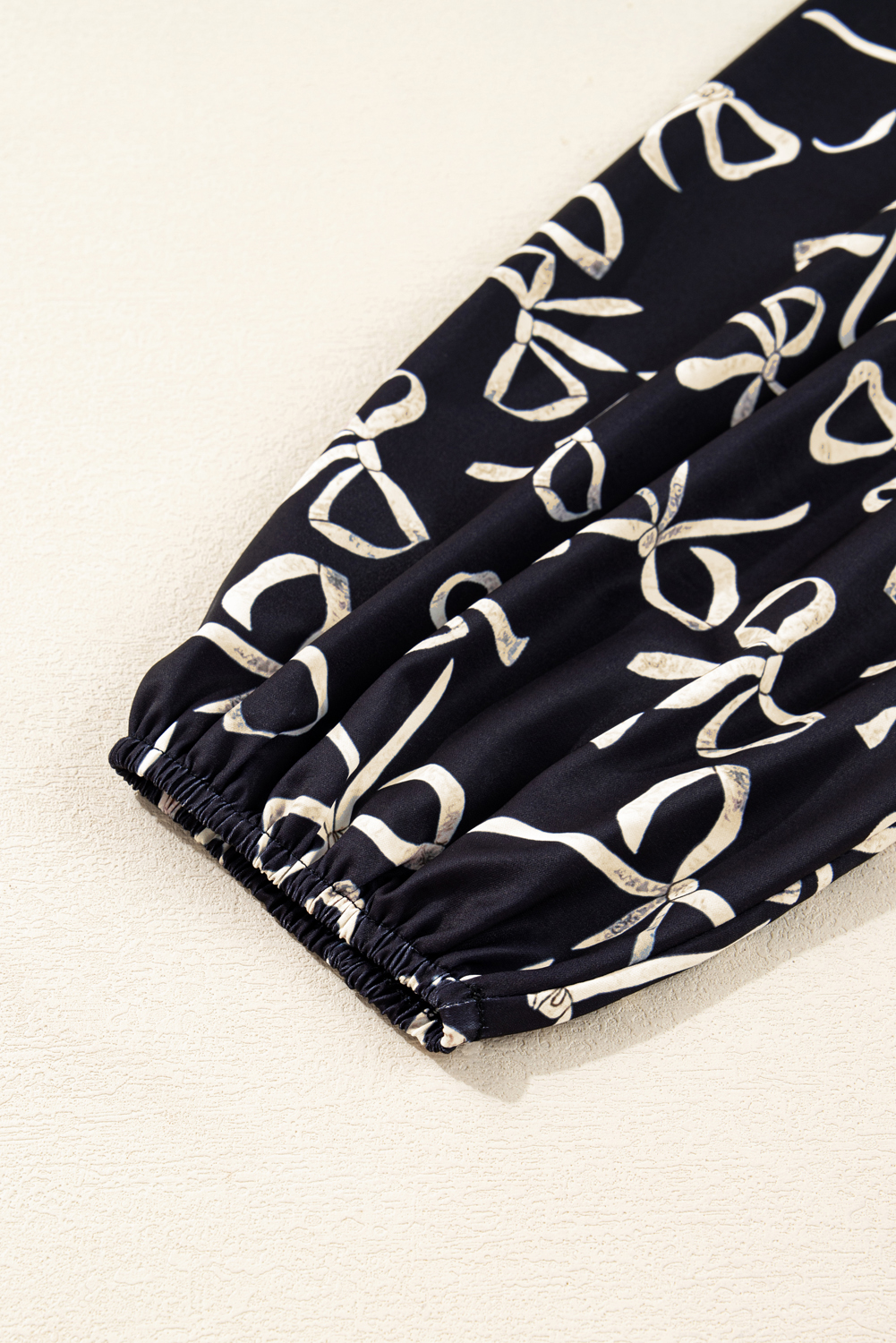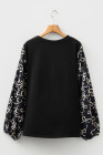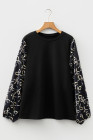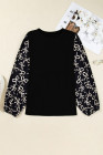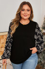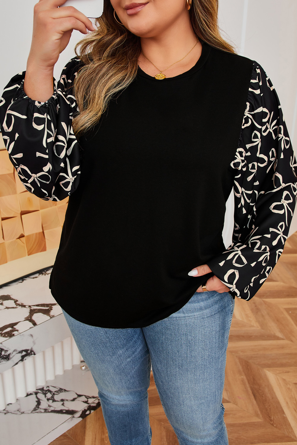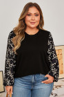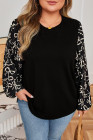 Schwarze Patchwork-Bluse mit Rundhalsausschnitt und Schleife in Übergröße