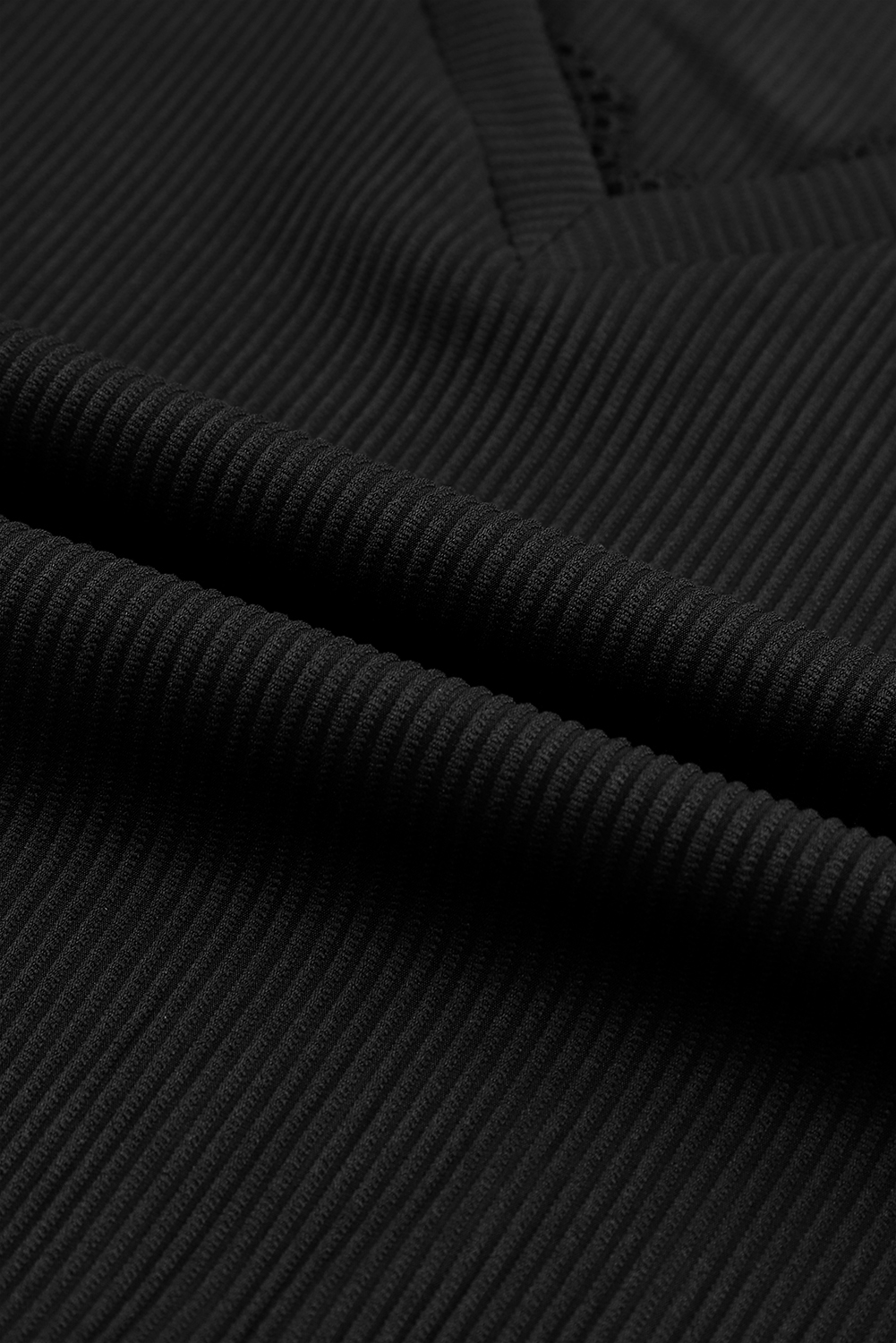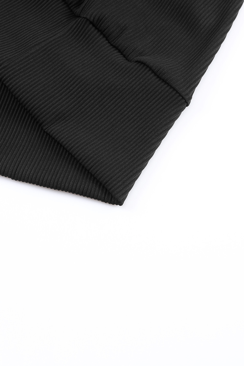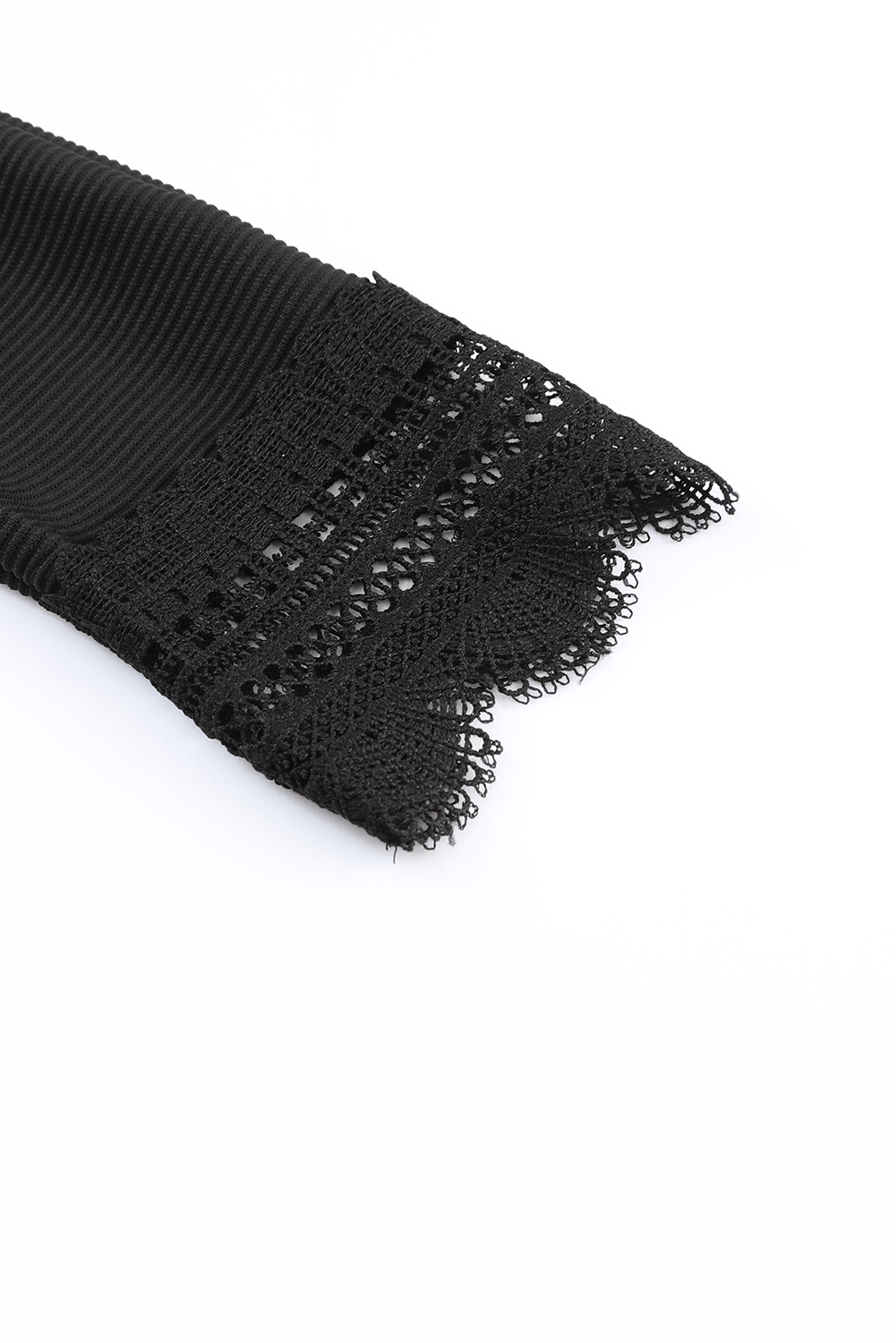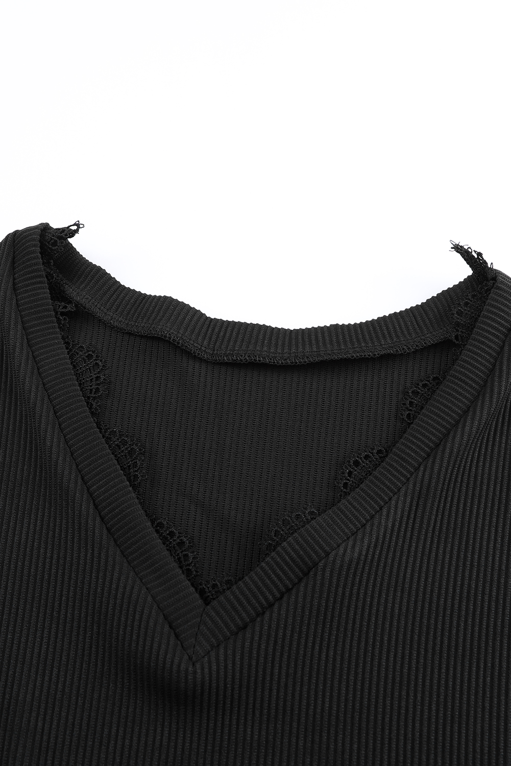 Dieses schwarze Oberteil mit Rippstruktur und Spitzenbesatz ist so vielseitig und stilvoll, dass es in Ihrer Garderobe ein Muss ist.