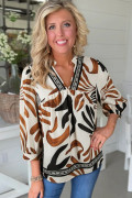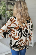 Braune, lockere Bluse mit abstraktem Print und Puffärmeln