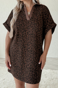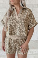 Braunes Shorts-Set mit V-Ausschnitt und Leopardenmuster, 2-teilig