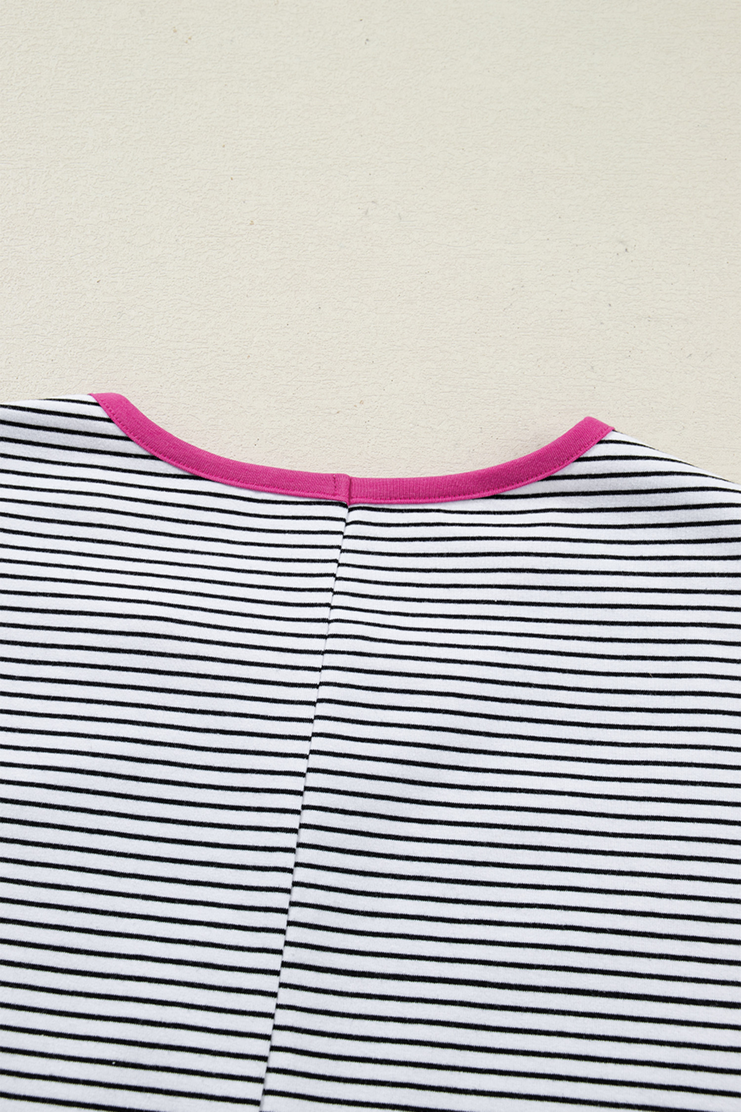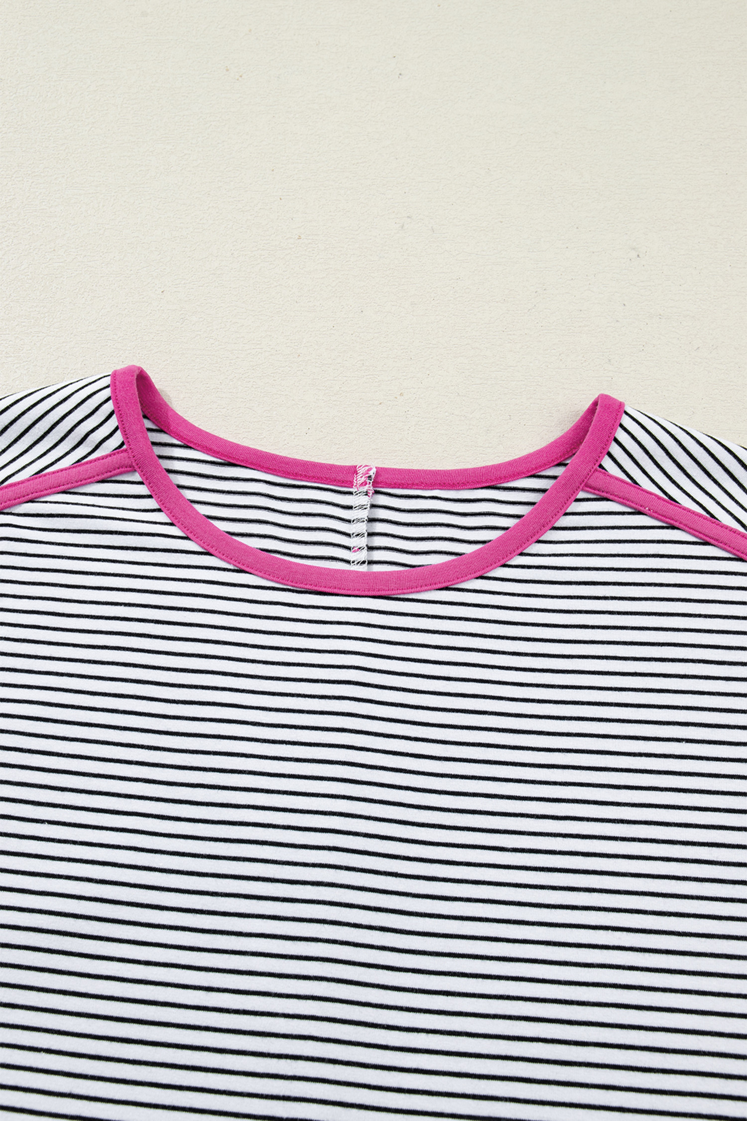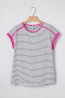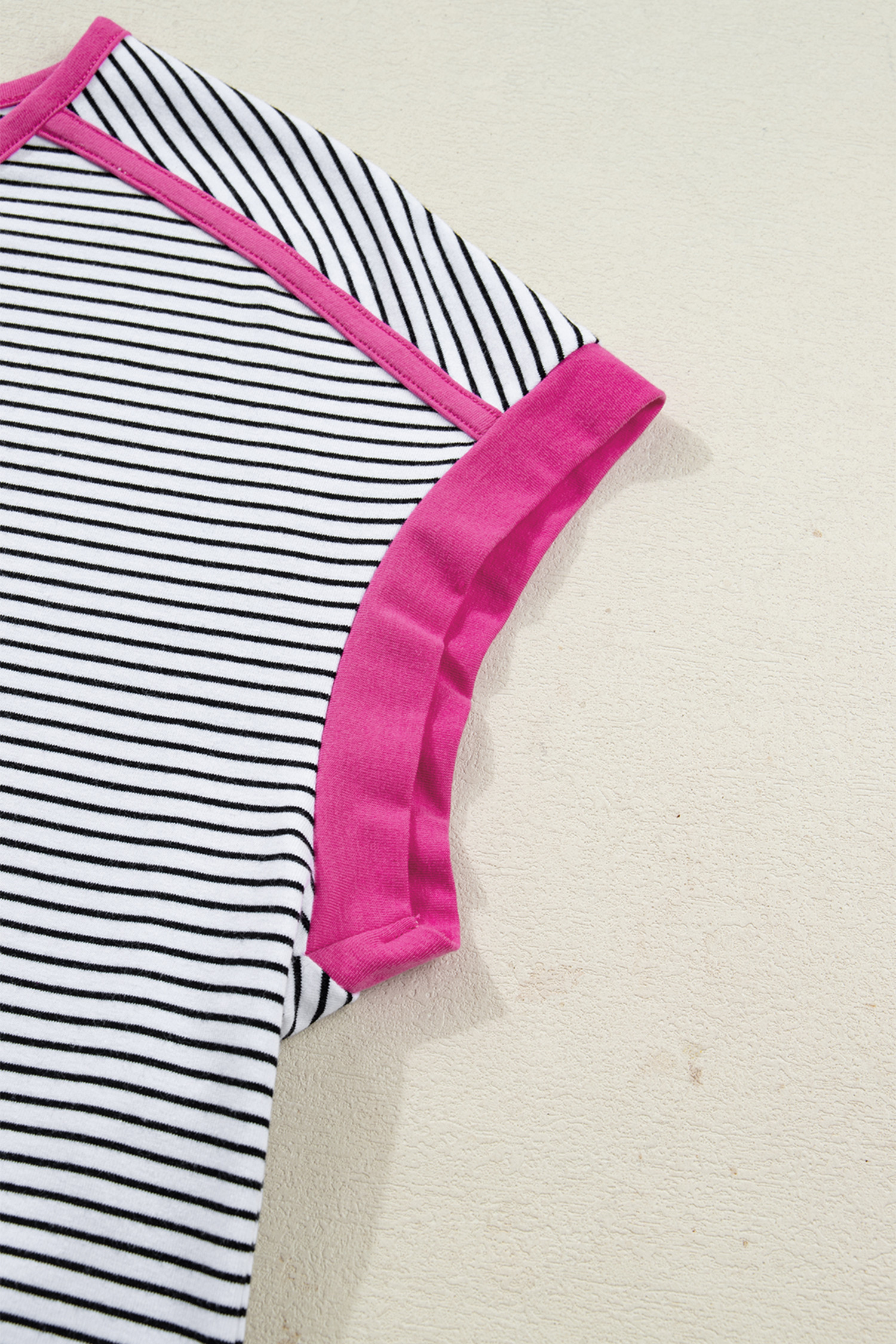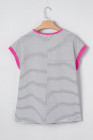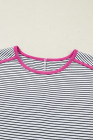 Sommer-T-Shirt mit Rosenstreifen und Kontrastbesatz, Rundhalsausschnitt