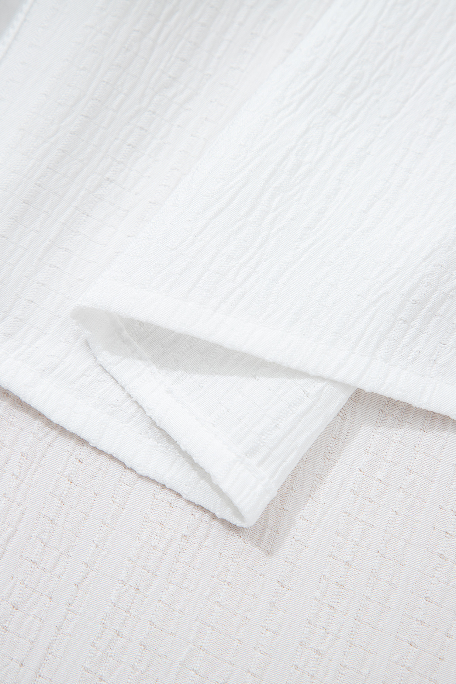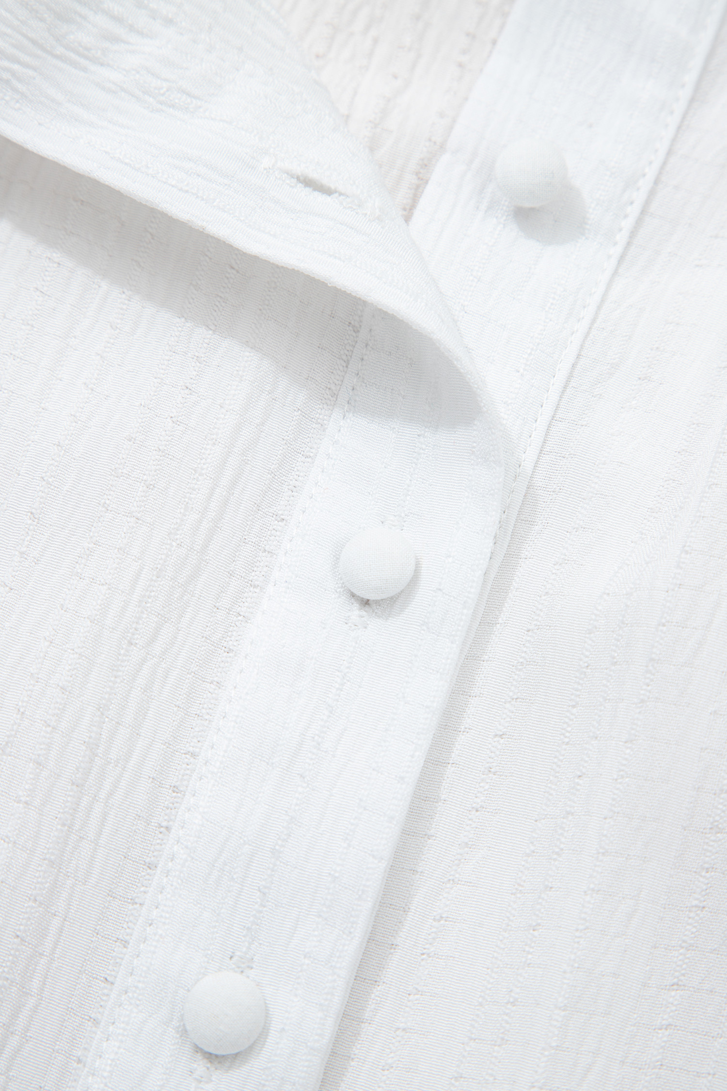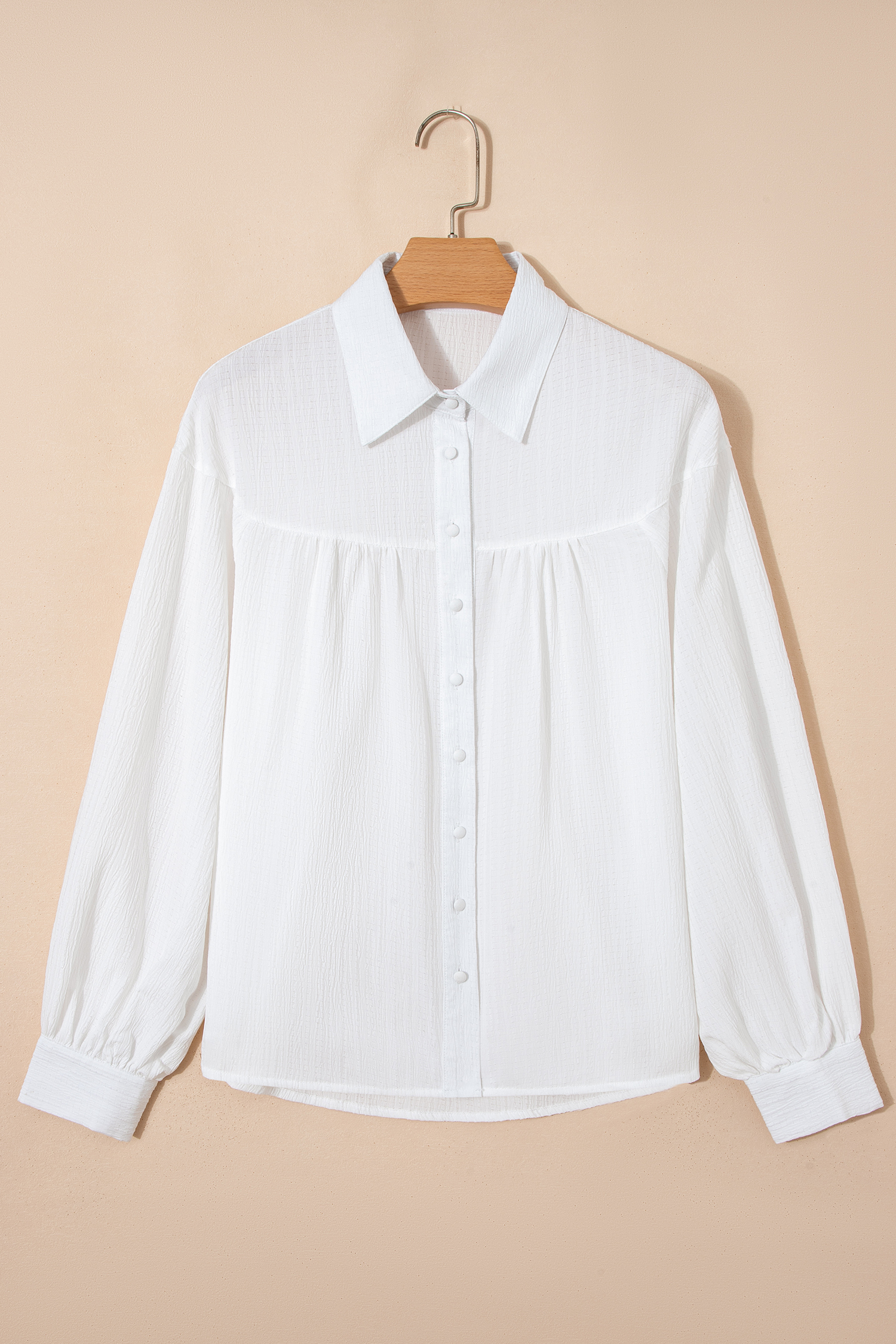 Weißes, locker sitzendes Hemd mit knitteriger Textur, Laternenärmeln und Knopfleiste