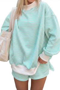 2-teiliges Set: Langarmpullover mit gelben Streifen und Farbblock-Details, elastischer Bund und Shorts zum Hineinschlüpfen